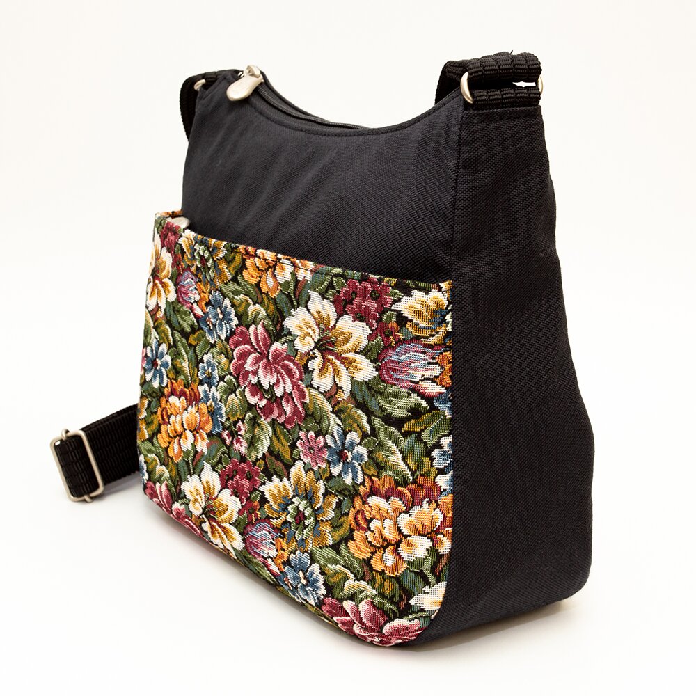 ゴブラン織りの名前が一般的になったのは15世紀フランス。当時は有名な絵画を元絵とし人物や記念行事などを描写したものが多く作られました。当店のゴブラン織りは織物・染物のまちとして古くから有名な栃木県は足利で生産されたものを使用しています。足利は奈良時代から織物産業が盛んで、徒然草にも登場するほど有名な産地です。歴史あるゴブラン織りの製法を受け継ぎながらも日本の職人が腕をふるい織り上げた至高の逸品です。繊細な色遣いと日本らしさが融合した当店自慢のバッグに仕上げました。美しい絵画を身に着ける喜びをご堪能ください。