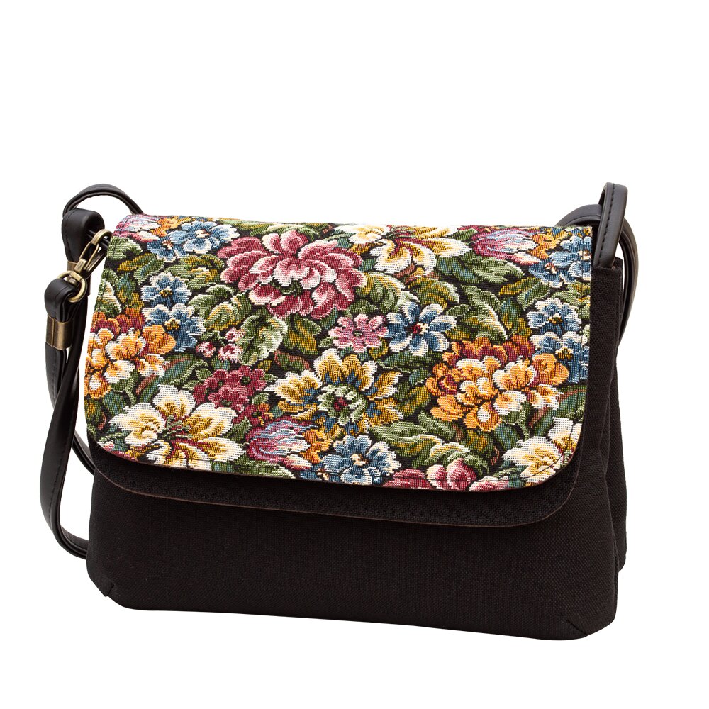 ゴブラン織りの名前が一般的になったのは15世紀フランス。当時は有名な絵画を元絵とし人物や記念行事などを描写したものが多く作られました。当店のゴブラン織りは織物・染物のまちとして古くから有名な栃木県は足利で生産されたものを使用しています。足利は奈良時代から織物産業が盛んで、徒然草にも登場するほど有名な産地です。歴史あるゴブラン織りの製法を受け継ぎながらも日本の職人が腕をふるい織り上げた至高の逸品です。繊細な色遣いと日本らしさが融合した当店自慢のバッグに仕上げました。美しい絵画を身に着ける喜びをご堪能ください。