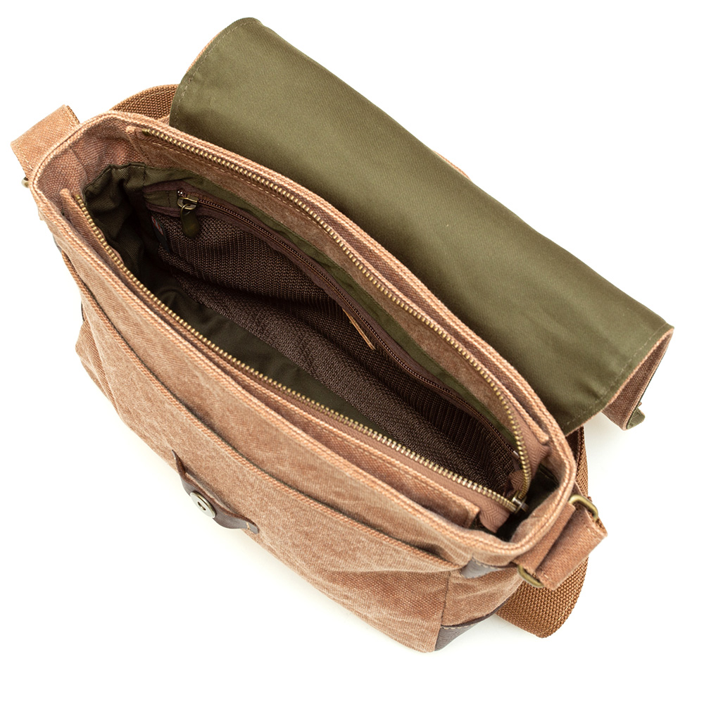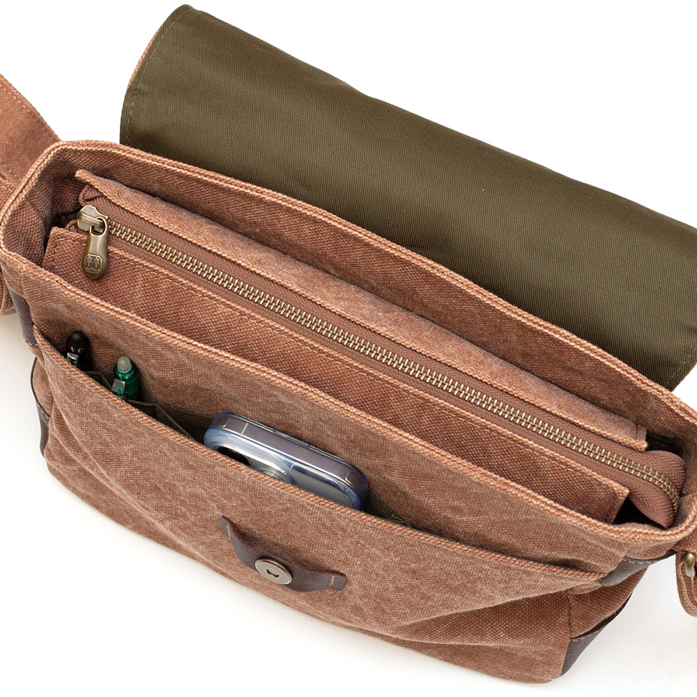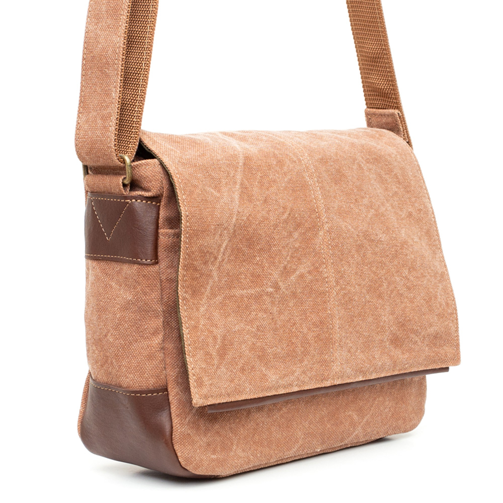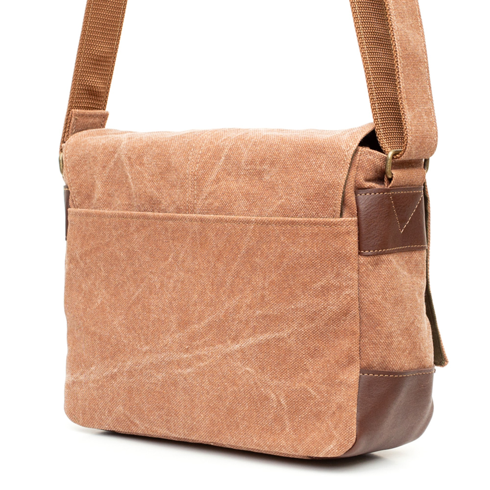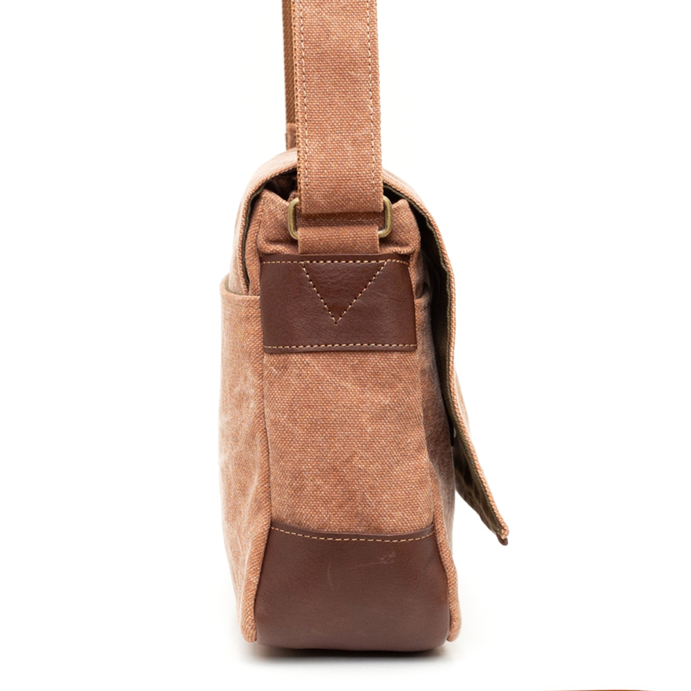 軽く機能性に優れたカジュアル過ぎないフォルムが何時ものスタイル。ボディーにフィットするジャストサイズは町歩きを軽快な気分に導いてくれる、お道具箱の様な楽しい相棒です。素朴な風合の柿渋染め帆布が、使うほどに擦れ跡さえも日々馴染んでいき、自分だけのオリジナルな鞄へと楽しませてくれるでしょう。
