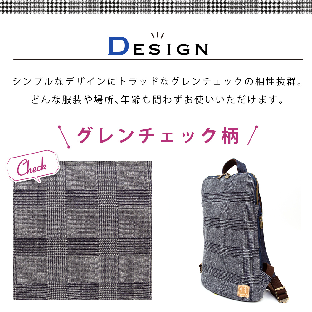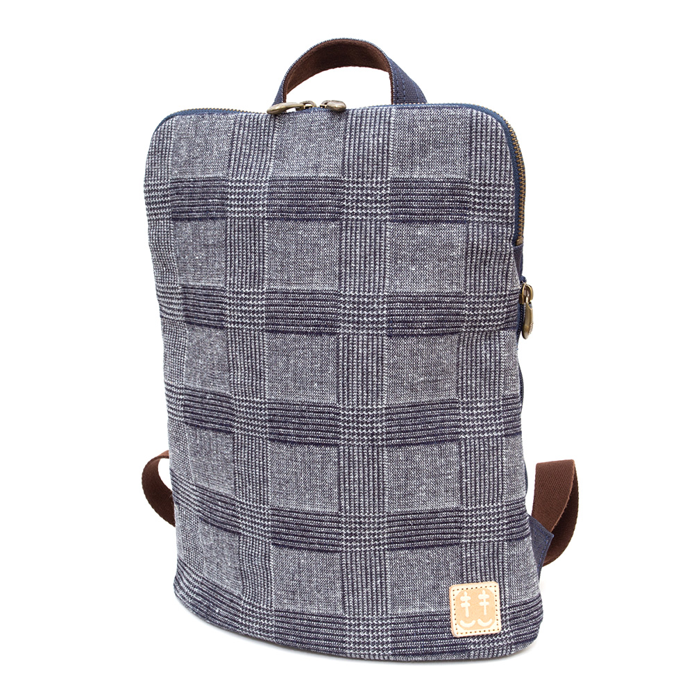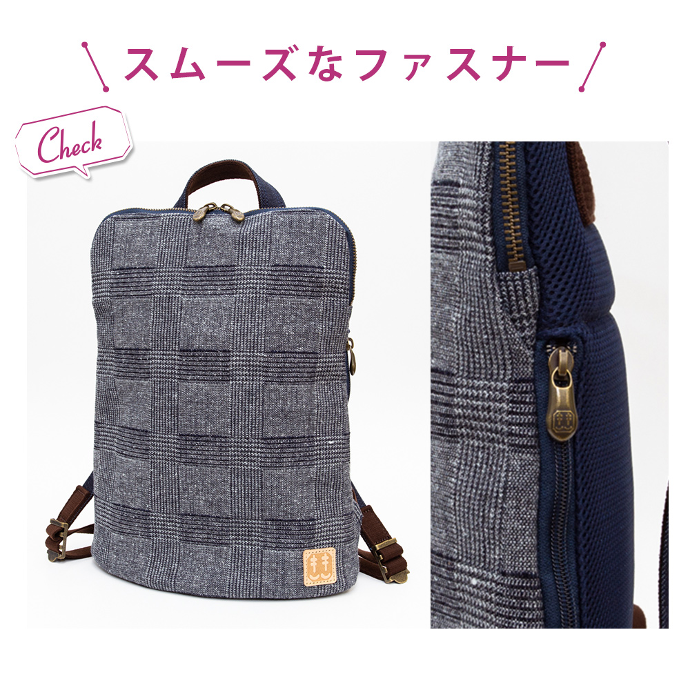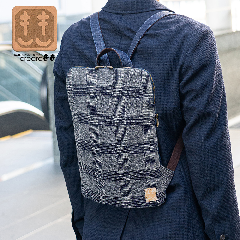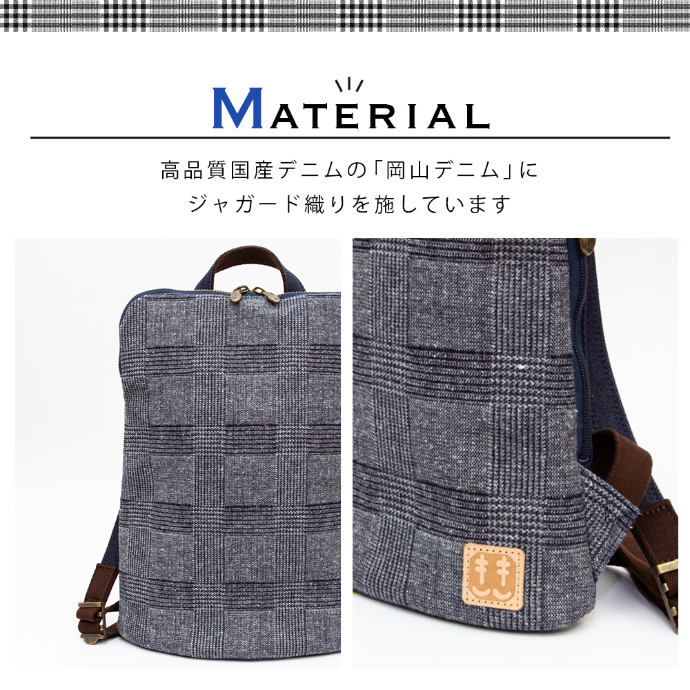 岡山ジャガードデニム グレンチェック 薄マチ リュック
