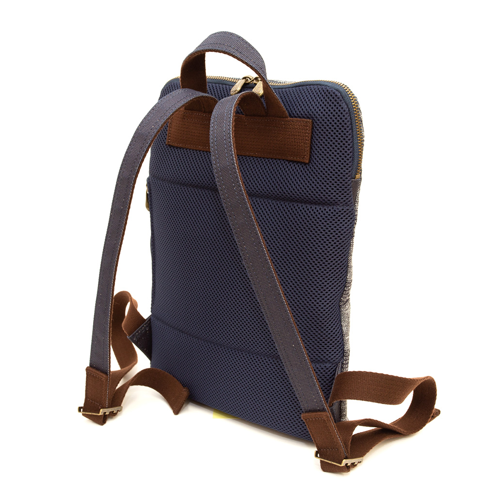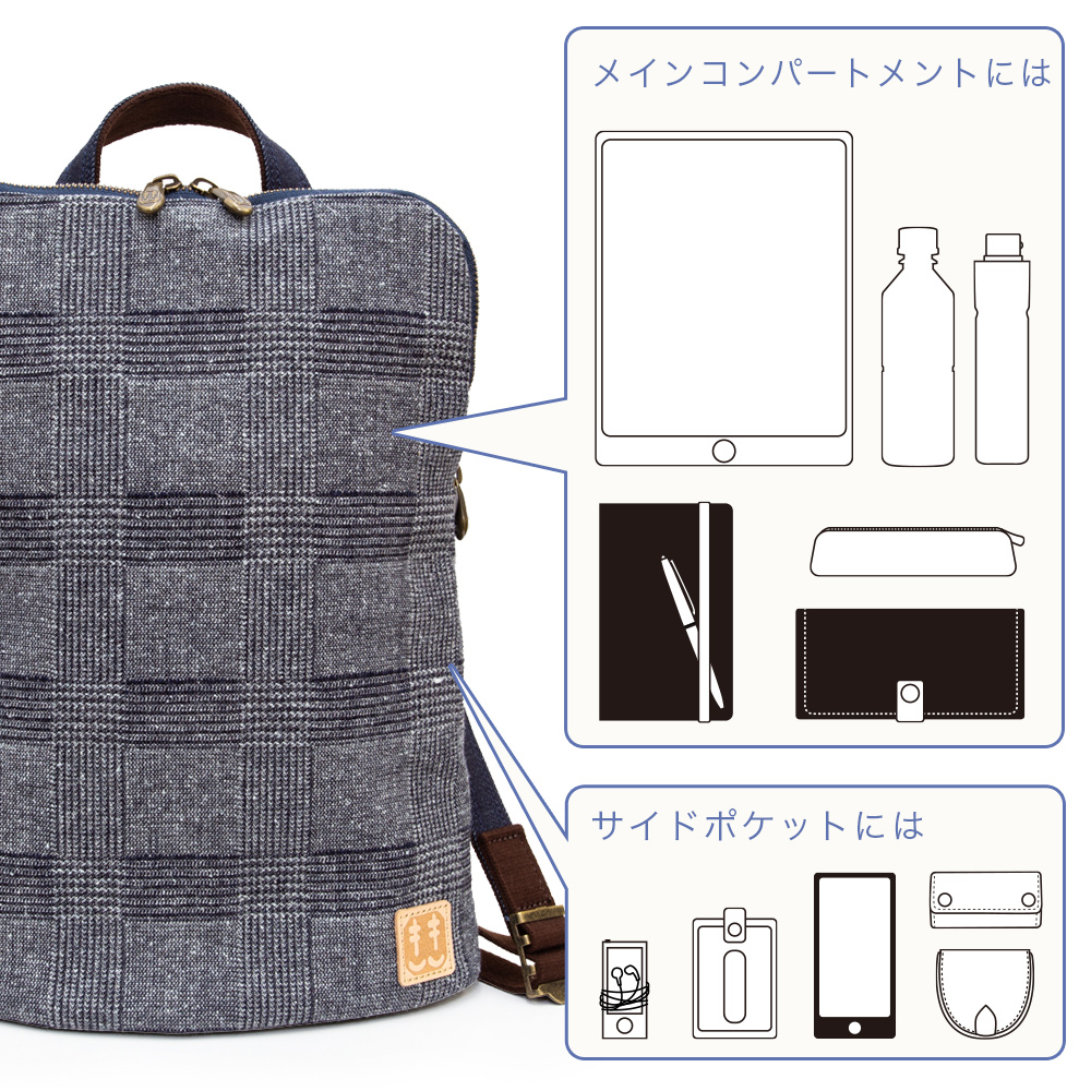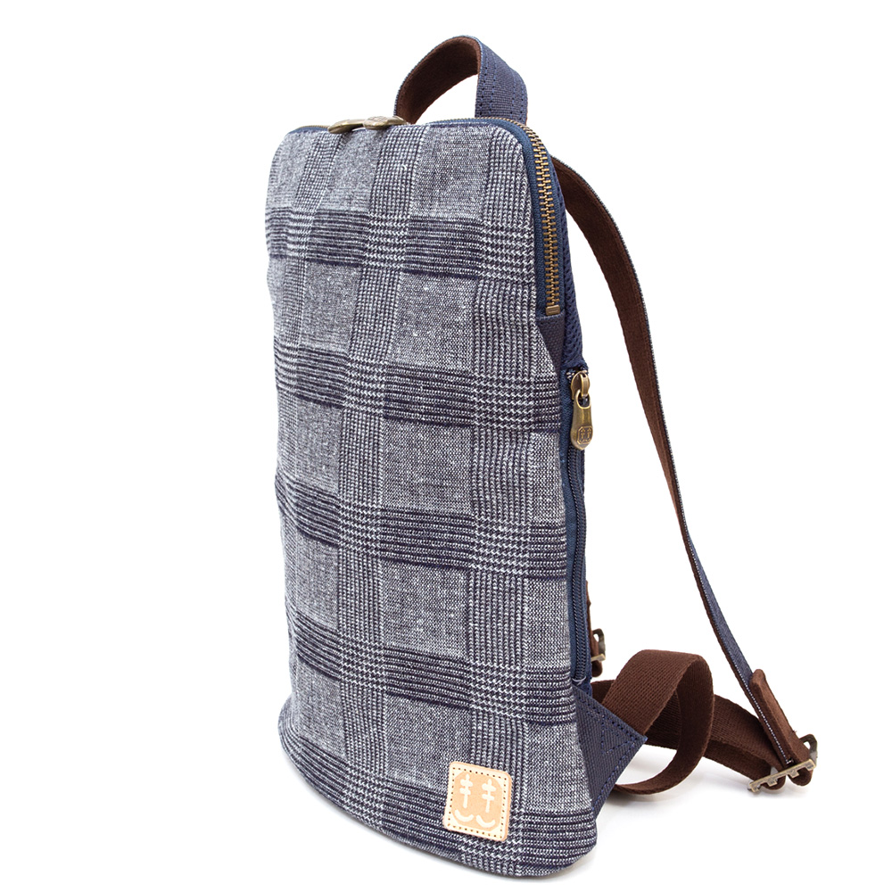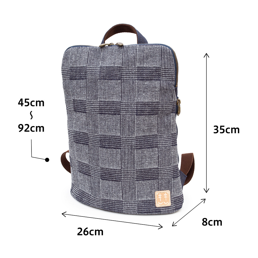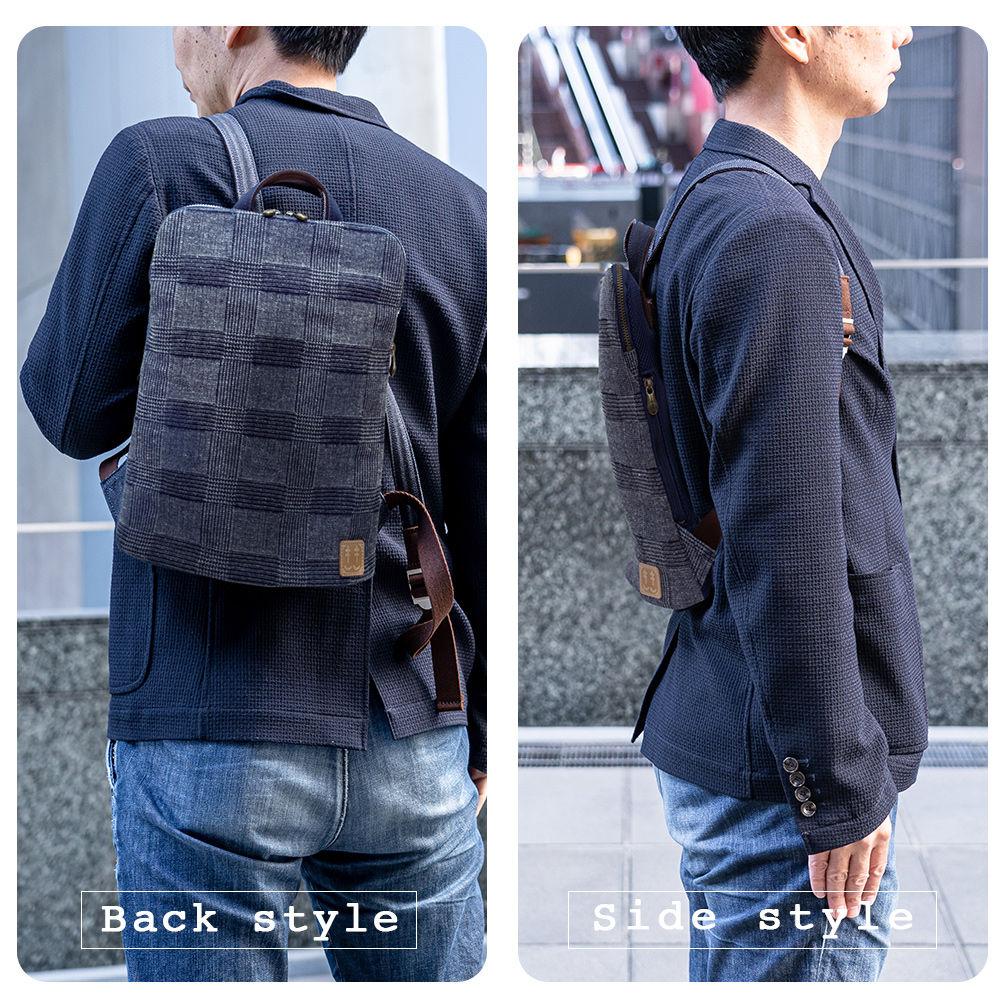 岡山ジャガードデニム グレンチェック 薄マチ リュック