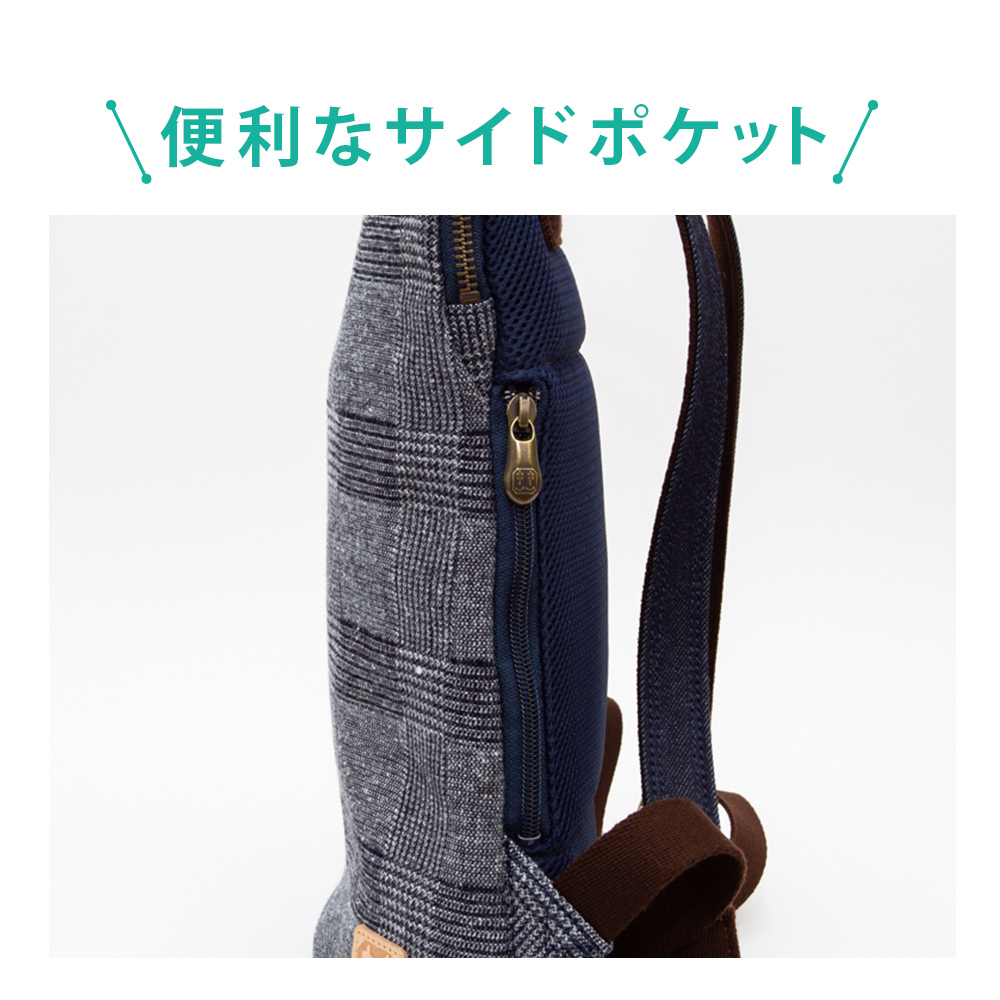 サイドポケット ── ファスナー開閉式(内部、弱撥水生地使用)